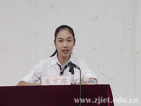 教师代表财务会计系郑宝凤老师和老生代表人文旅游系裘辰菲、新生代表信息技术系何英俊分别在会上作了发言。