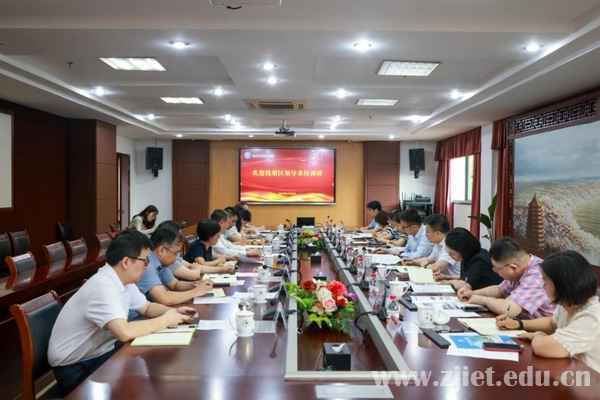 6月20日,钱塘区党工委委员、区委常委,科学城党工委书记、管理办公室主任周妙荣一行来校调研。学校党委书记劳赐铭、副校长林锋出席座谈会,相关部门负责人参加座谈交流。